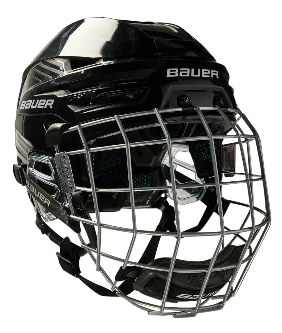 Le casque est Ă©quipe d’une grille Bauer Profil II