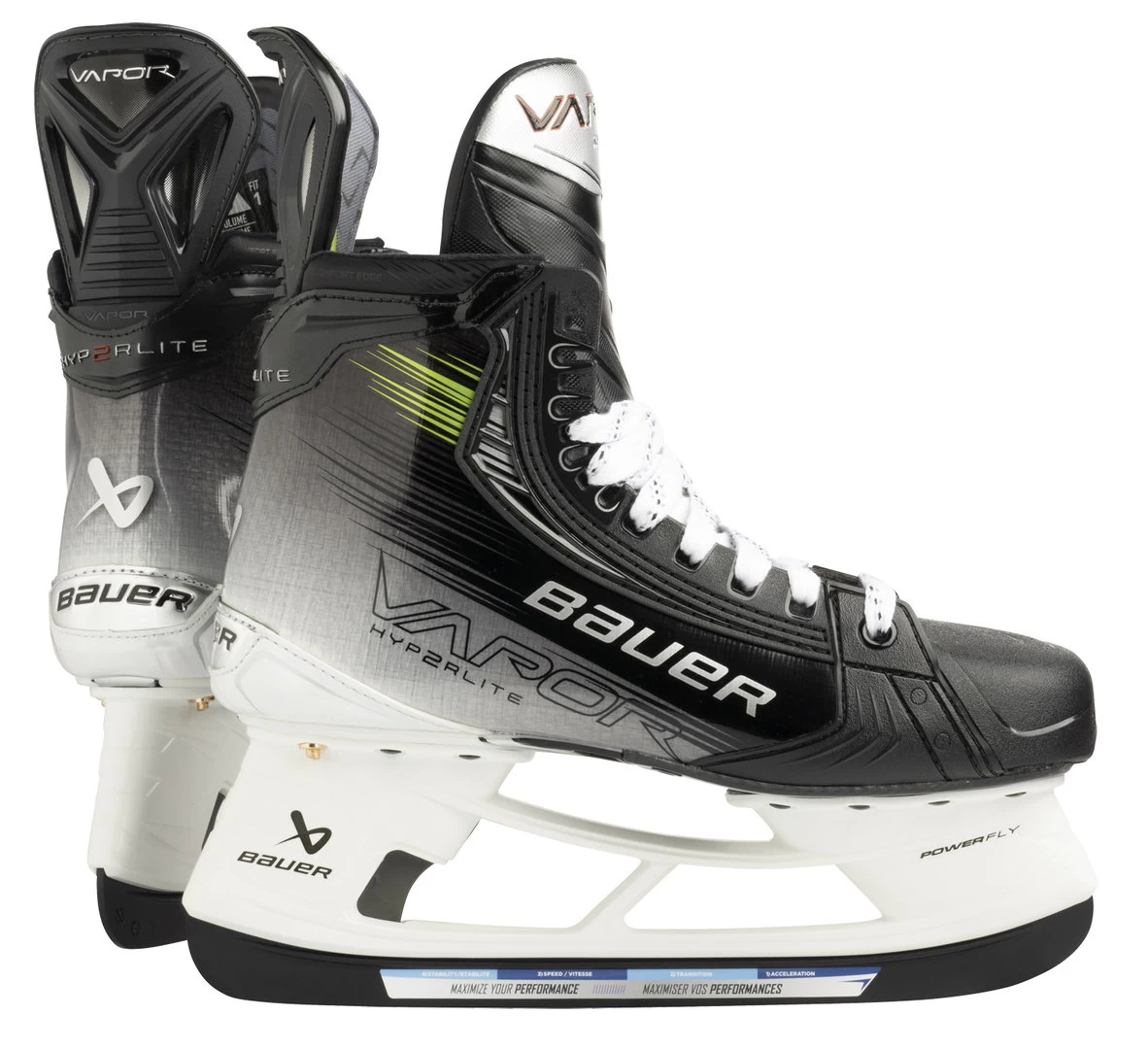 Le patin Vapor Hyp2rlite est conçu pour le patineur rapide et agile de niveau pro qui joue plus de cinq heures par semaine. Il remplace le model Vapor Hyperlite. Les patins VAPOR sont conçus pour la rapidité et sont dotés d’une tige faite de matériaux plus rigides et plus résistants. La partie inférieure de la botte est plus flexible et plus réactive pour une meilleur mobilité